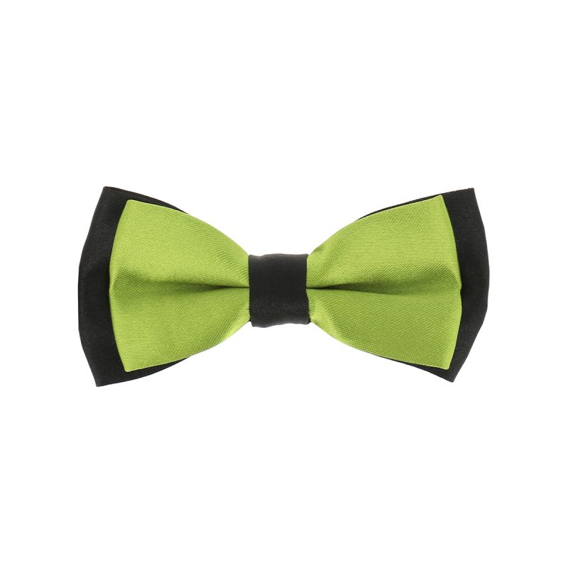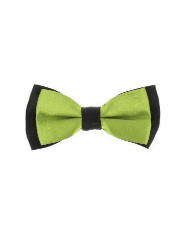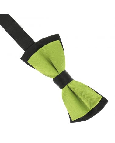 Noeud papillon garçon double vert citron et noir. Modèle prénoué.