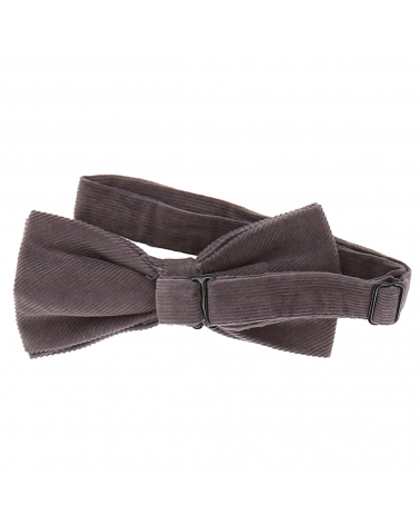 Noeud papillon velours côtelé gris. Modèle prénoué.
