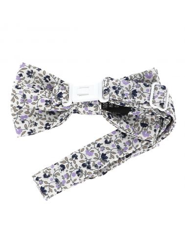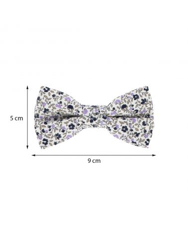 Offrez à votre enfant une touche d’élégance avec ce noeud papillon fleuri parme, en coton doux. Son motif floral délicat et ses tons sobres s’adaptent parfaitement aux tenues de cérémonie.